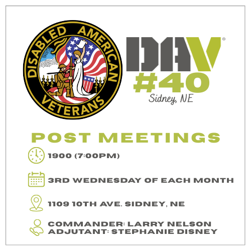 The Cheyenne County Veterans Service Office is looking for dedicated volunteers to drive our DAV van, transporting local veterans to the Cheyenne VA Medical Center. Just a couple of days a month can make a huge difference. We work with your availability and provide your schedule months in advance — making it easy to plan around your commitments. If you’re looking for a meaningful way to give back to those who served, we’d love to have you on board.